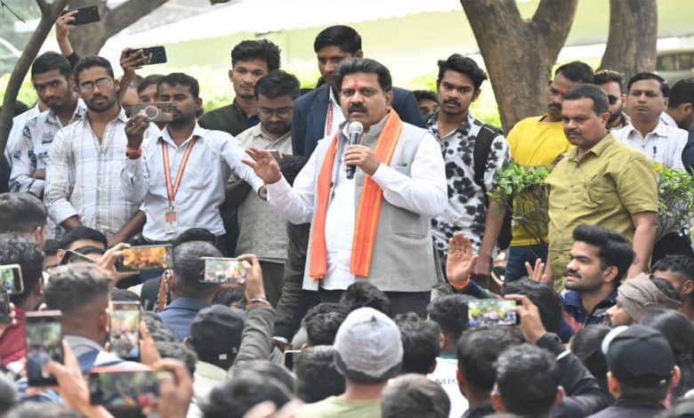 उपमुख्यमंत्री एवं गृहमंत्री विजय शर्मा ने आज अपने सिविल लाइन रायपुर स्थित निज निवास में अपनी पूर्व घोषणा अनुरूप छत्तीसगढ़ पुलिस आरक्षक भर्ती के अभ्यर्थियों से रूबरू होकर उनसे सीधा संवाद किया। अपने वादे के अनुसार वे ठीक 10 बजे अभ्यर्थियों के बीच भर्ती प्रक्रिया के प्रमुख एडीजी एसपीआर कल्लूरी, आईजी बद्री नारायण मीना के साथ उपस्थित हुए। इस दौरान उन्होंने कहा कि छत्तीसगढ़ पुलिस आरक्षक भर्ती प्रक्रिया पूरी तरह से पारदर्शी और विश्वसनीय तरीके से सम्पादित की गई है। शासन अपनी भर्ती प्रक्रिया में पारदर्शिता के लिए पूर्ण रूप से प्रतिबद्ध है। उन्होंने भर्ती प्रक्रिया के संबंध में अभ्यर्थियों की सभी मांगों और समस्याओं पर सभी के बीच जमीन में बैठकर हर समस्या पर बिंदुवार बात की।