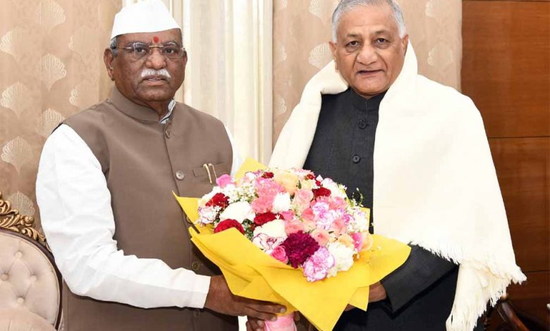 राज्यपाल हरिभाऊ बागडे से बुधवार को मिजोरम के राज्यपाल विजय कुमार सिंह ने लोकभवन पहुंचकर मुलाकात की। इस दौरान दोनों ने विभिन्न विषयों पर चर्चा की। राज्यपाल से उनकी यह शिष्टाचार भेंट थी।